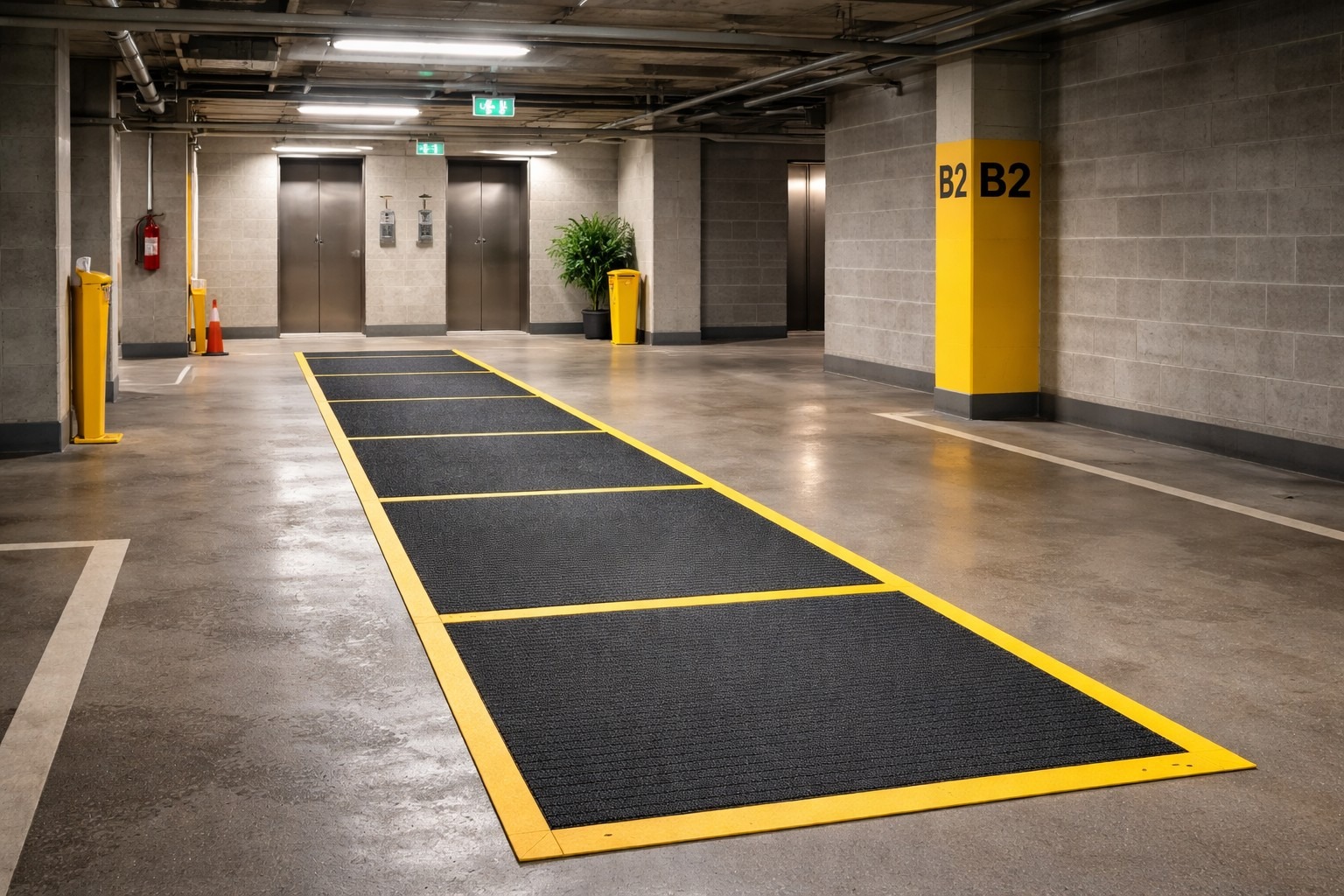 From there, look at how people actually move through the space. The path from parking stalls to elevators tends to carry the most foot traffic, which means it also carries the most moisture. Adding durable runners or matting along these routes helps absorb water before it spreads further into the parkade.
